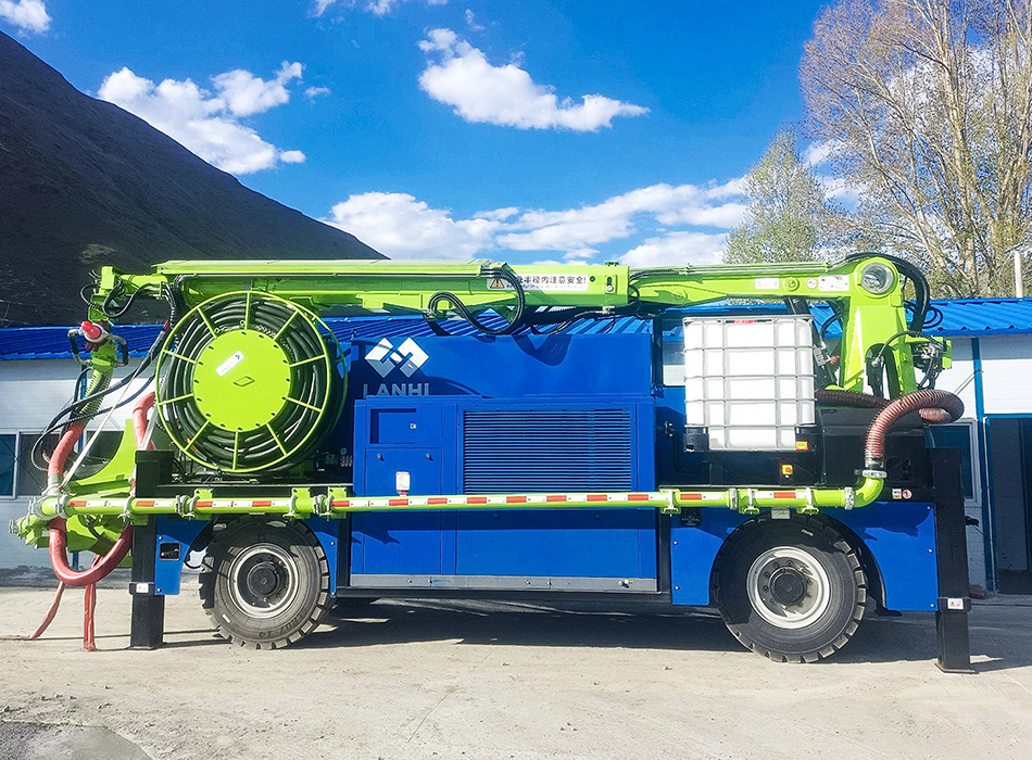 LHP40K-G輪式濕噴機(jī)械手是一款綜合國(guó)內(nèi)隧道初支混凝土噴漿工藝及高海拔施工工況研發(fā)升級(jí)的一款 專(zhuān)用設(shè)備,最大噴射方量達(dá)到40m3/h,廣泛應(yīng)用于隧道工程、水利工程、市政工程、道路橋梁工程等。 該設(shè)備具有噴射方量大、不易堵管、回彈低、性能穩(wěn)定可靠等特點(diǎn),既適用于全斷面,也適用于半斷面 和多階梯開(kāi)挖。